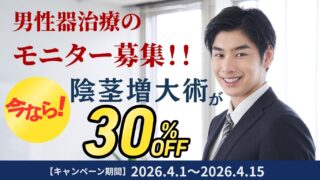 お知らせ 【ご好評につき期間延長】男性器治療(陰茎増大術)キャンペーン|全顔動画モニター30%OFF