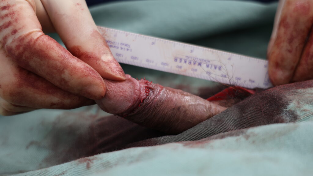 そこで今回は、包茎術で余剰皮膚を整理しつつ、バック筋膜切開+靭帯剥離で根元から長さを引き出す総合的なアプローチで治療を行う方針としました。